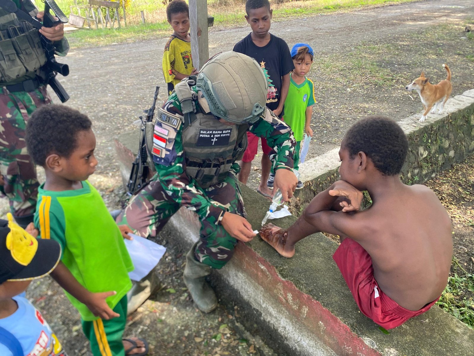 Bermula dari 8 (delapan) personil Pos Bendungan Tami 3 dipimpin Serka Liansyah (Danpos) melaksanakan Anjangsana ke Desa Amyu, Distrik Arso Timur, (13 Oktober 2025), lantas pada saat personil Satgas akan kembali ke Pos diperjalanan dihampiri anak-anak yang sedang bermain selepas sekolah dan terlihat 1 (satu) anak di bagian tangan serta punggung kaki terdapat luka.