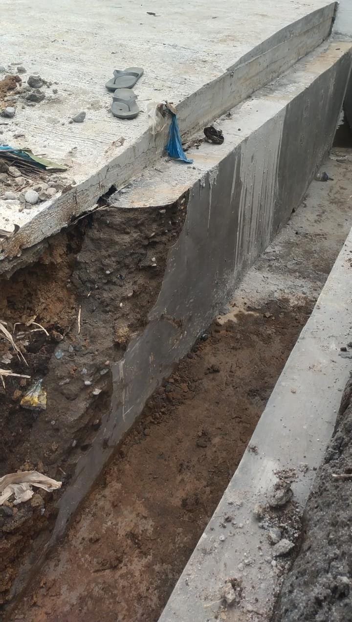Pantauan awak media dilokasi terlihat pekerja sedang membersihkan runtuhan material sekira 5 meter parit di jembatan tersebut dilokasi runtuhan terlihat parit yang dibangun tidak ada pondasi sehingga sangat rawan tumbang terlebih ketika tergerus air.