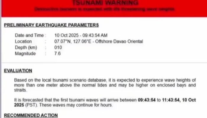 Jakarta | BATAVIAINEWS.COM. Hari Jumat 10 Oktober 2025 pukul 08.43.58 WIB wilayah Laut Filipina, Kepulauan Talaud, Sulawesi Utara diguncang gempa tektonik. Hasil analisis BMKG menunjukkan gempabumi ini memiliki parameter update dengan magnitudo M7,4. Episenter gempabumi terletak pada koordinat 7,23° LU ; 126,83° BT, atau tepatnya berlokasi di laut pada jarak 275 Km arah Barat Laut Pulau Karatung, Sulawesi Utara pada kedalaman 58 km.